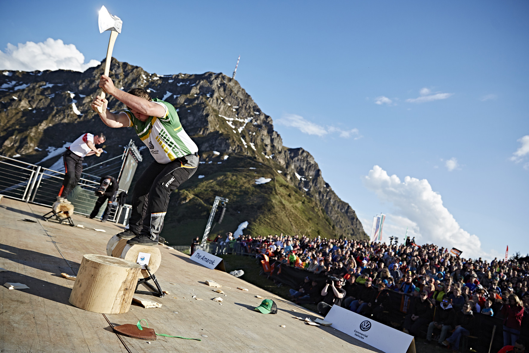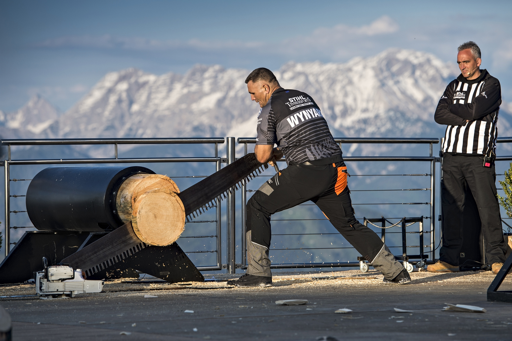 Bereits am Vortag zeigte der internationale Sportholzfäller-Nachwuchs bei der STIHL TIMBERSPORTS® Rookie-Weltmeisterschaft, wie schnell und geübt er mit Axt und Säge als Sportgerät umgeht. Hier gewann der Kanadier Ben Cumberland vor dem Australier Andrew Kelly und Ben Kniceley aus den USA.