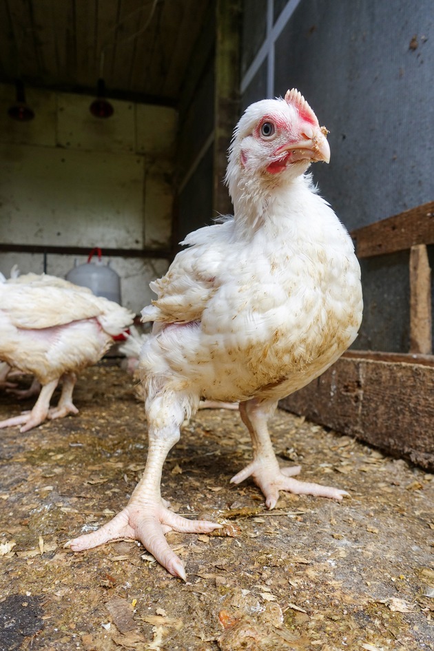 Durch den rasanten Fleischzuwachs verformen sich die Knochen. Schmerzhafte Gelenksschäden sind die Folge. Zuletzt können die Tiere kaum noch gehen. Plötzlicher Herztod, Kreislaufkollaps und Lungenversagen sind häufig.