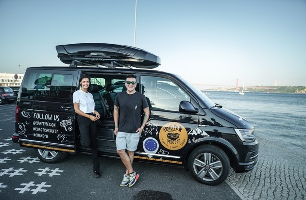 # Volkswagen Nutzfahrzeuge unterstützt Projekt der EU Komission mit einem T6 Multivan Highline # Start in Cabo da Roca, Portugal Fahren, sehen, erleben: Start des zweiten Teils des "EU Road Trip Projects". In Portugal ging es für zwei junge Europäer im T6 Multivan Highline los. Ziel: Land und Leute der EU kennenlernen. Volkswagen Nutzfahrzeuge unterstützt das EU-Projekt.