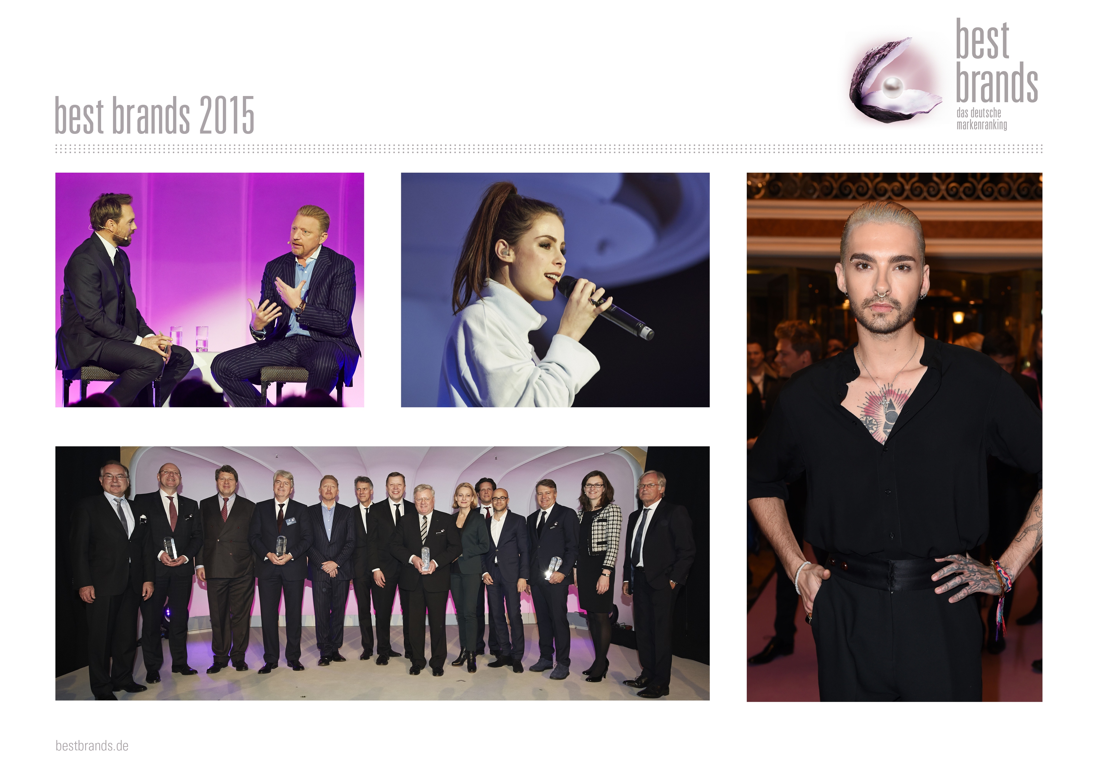 Die Keynote der best brands Gala 2015 hielt Entrepreneur, Tennispro und Wimbledonchampion Boris Becker, nachdem Moderator Steven Gätjen den Abend eröffnet hatte. Im Anschluss wurde als erstes die beste Produktmarke gefeiert, die, wie auch alle anderen Gewinner, mit einer Laudatio sowie einem kurzen Trailer angekündigt wurde. Zwischen der Verleihung der Kategorien "Beste Wachstumsmarke" und "Beste Unternehmensmarke", begeisterte Lena Meyer-Landrut die rund 600 Gäste aus der Wirtschafts- und Medienwelt mit ihrer Stimme; danach kürte "Tokio Hotel"-Sänger und Model Bill Kaulitz im Interview mit Steven Gätjen die beste Modemarke.