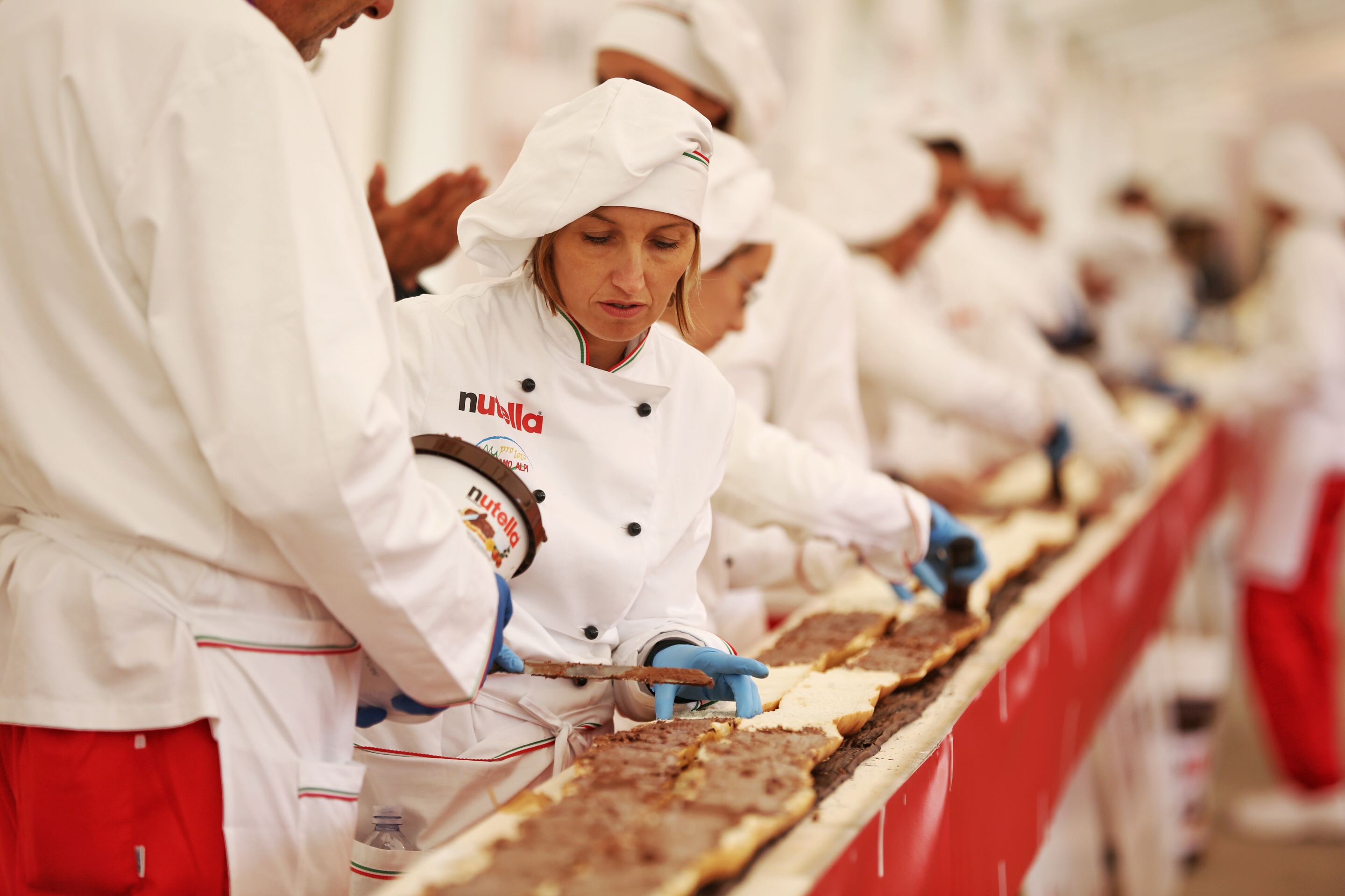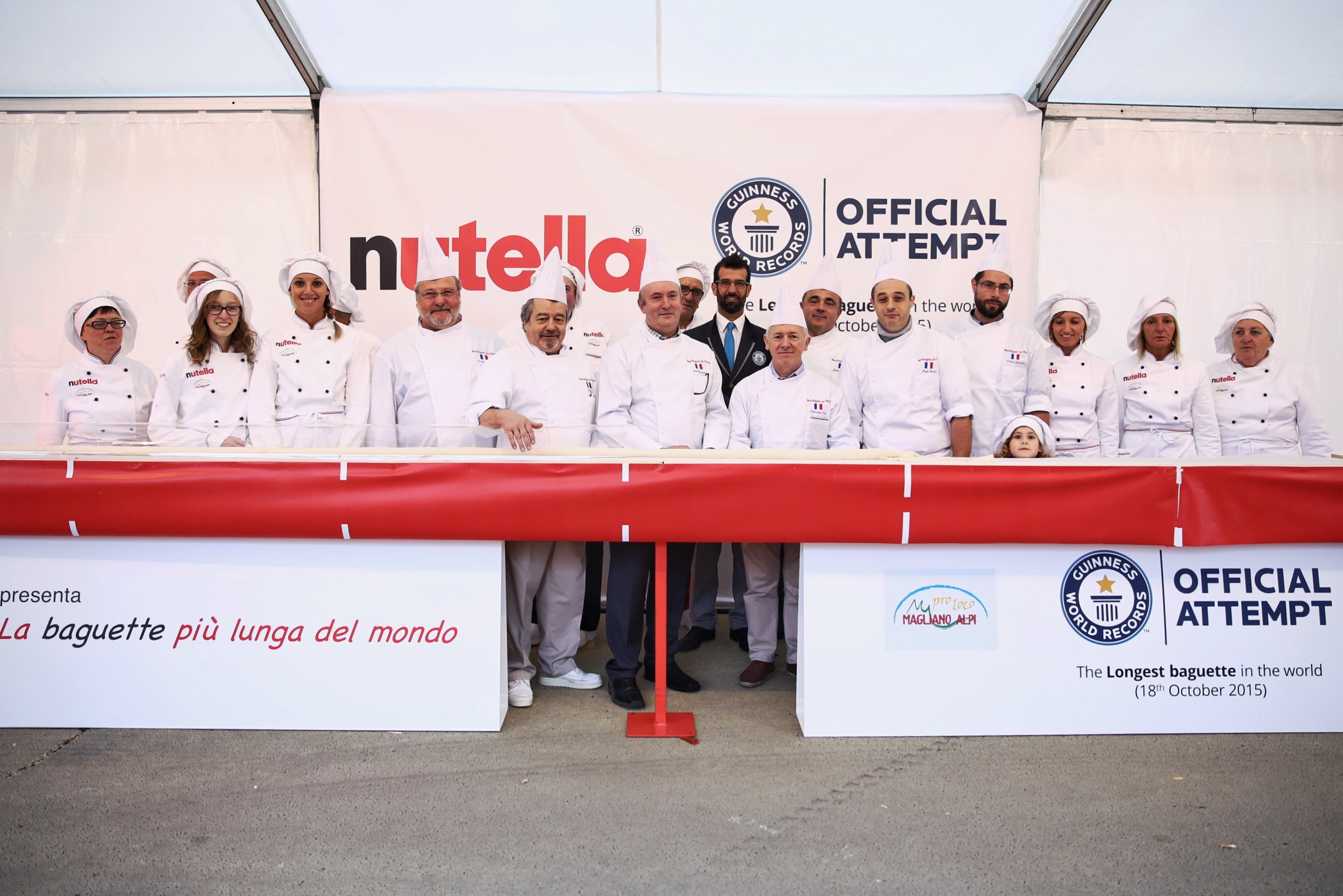 Ab 09.30 Uhr waren sieben Meisterbäcker der Bäcker- und Konditoreninnung, Paris, sowie 20 italienische Bäcker des Proloco-Verbands aus dem italienischen Ort Magliano Alpi (Provinz Cuneo) damit beschäftigt, das längste Baguette der Welt nach französischem Originalrezept zuzubereiten und zu backen. Für diesen Rekord waren mehr als sechs Stunden Arbeit erforderlich. Anschließend konnten nutella-Fans 2.400 Scheiben Brot mit nutella genießen.