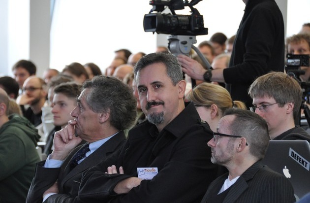 Martin Dougiamas, Begründer von Moodle und Special Guest, ist aus Perth/Australien angereist. Mit seiner Keynote hat er direkt aus dem Headquarter der Moodle -Entwicklung berichtet, neuste Planungen vorgestellt und aufgezeigt wohin der Weg in die Zukunft geht. "Moodle wird Open Source bleiben und Open Source in neue Sphären bringen. Anders als andere Unternehmen ist unser Motor der Wunsch, Lehrende mit Instrumenten auszustatten, die sie nach ihren Wünschen einsetzen können. Auch wenn wir eine Reihe kostenpflichtiger Dienstleistungen anbieten, sind diese doch ausschließlich dafür da, die Entwickler_innen unserer kostenlosen Software zu bezahlen", bemerkt Martin Dougiamas.