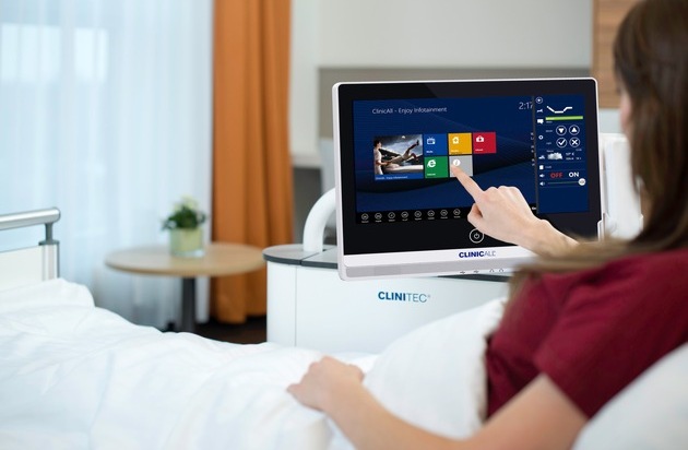 Das ClinicAll-Bedside-Terminal bietet Zugang zu Unterhaltungsangeboten per IPTV, Video-on-Demand-Angeboten und Computerspielen, enthält einen Web-Browser samt direkter Links zu den wichtigsten Webmail- und Social-Media-Angeboten und stellt auch die Bedienoberfläche für das integrierte Durchwahltelefon zur Verfügung. Doch sein Nutzen geht noch deutlich weiter. Denn die Terminals erlauben den behandelnden Ärzten und dem medizinischen Personal auch den vollen Zugriff auf die digitalen Patientenakten. So lassen sich Untersuchungsergebnisse, Heilungsverläufe und ähnliche Daten beim Besuch am Krankenbett abrufen und gegebenenfalls den Patienten erklären.