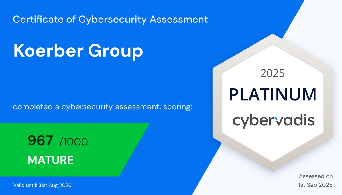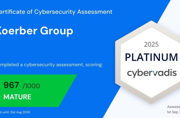 CyberVadis, ein Tochterunternehmen von EcoVadis, gehört zu den führenden Plattformen für Cybersicherheits-Bewertungen. Im Rahmen des Ratings wird insbesondere das Informationssicherheits-Managementsystem des Unternehmens bewertet. Körber unterzog sich bereits zum dritten Mal dieser umfassenden Prüfung und erhält nach zwei Gold-Medaillen in diesem Jahr erstmalig die Bestnote "Platin". Mit dem Platin-Zertifikat zeichnet CyberVadis Unternehmen aus, die eine außergewöhnliche Reife im Bereich Cybersicherheit vorweisen können. Diese Auszeichnung bestätigt den hohen Stellenwert von Cybersicherheit als fester Bestandteil des Geschäftsmodells bei Körber.