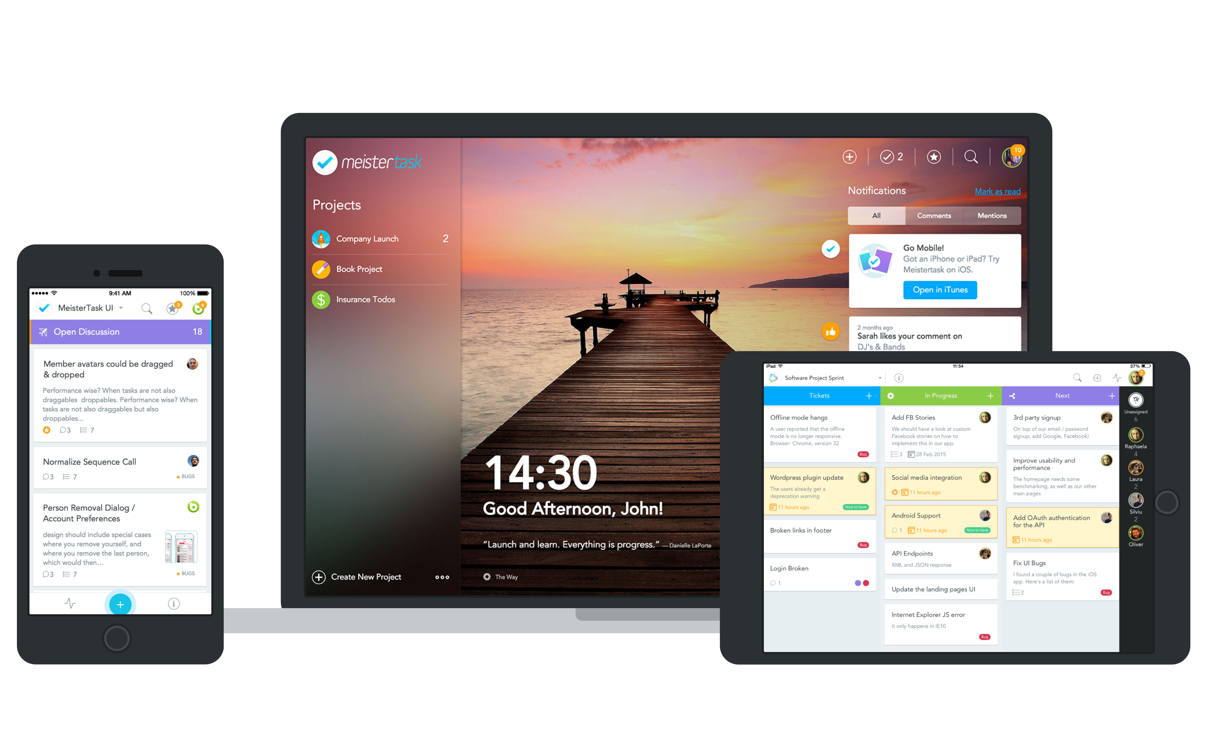 MeisterTask (www.meistertask.com) ist ein intuitives, webbasiertes Kollaborationstool, das neue Standards in effizientem - und sogar erfreulichem - Taskmanagement setzt. Mithilfe von MeisterTask können Teams ihre Projekte in einer stylischen Umgebung managen, die sich perfekt ihrem individuellen Workflow anpasst. Die Web-Version wird von kostenlosen nativen Apps für iPhone, iPad und Apple Watch ergänzt.