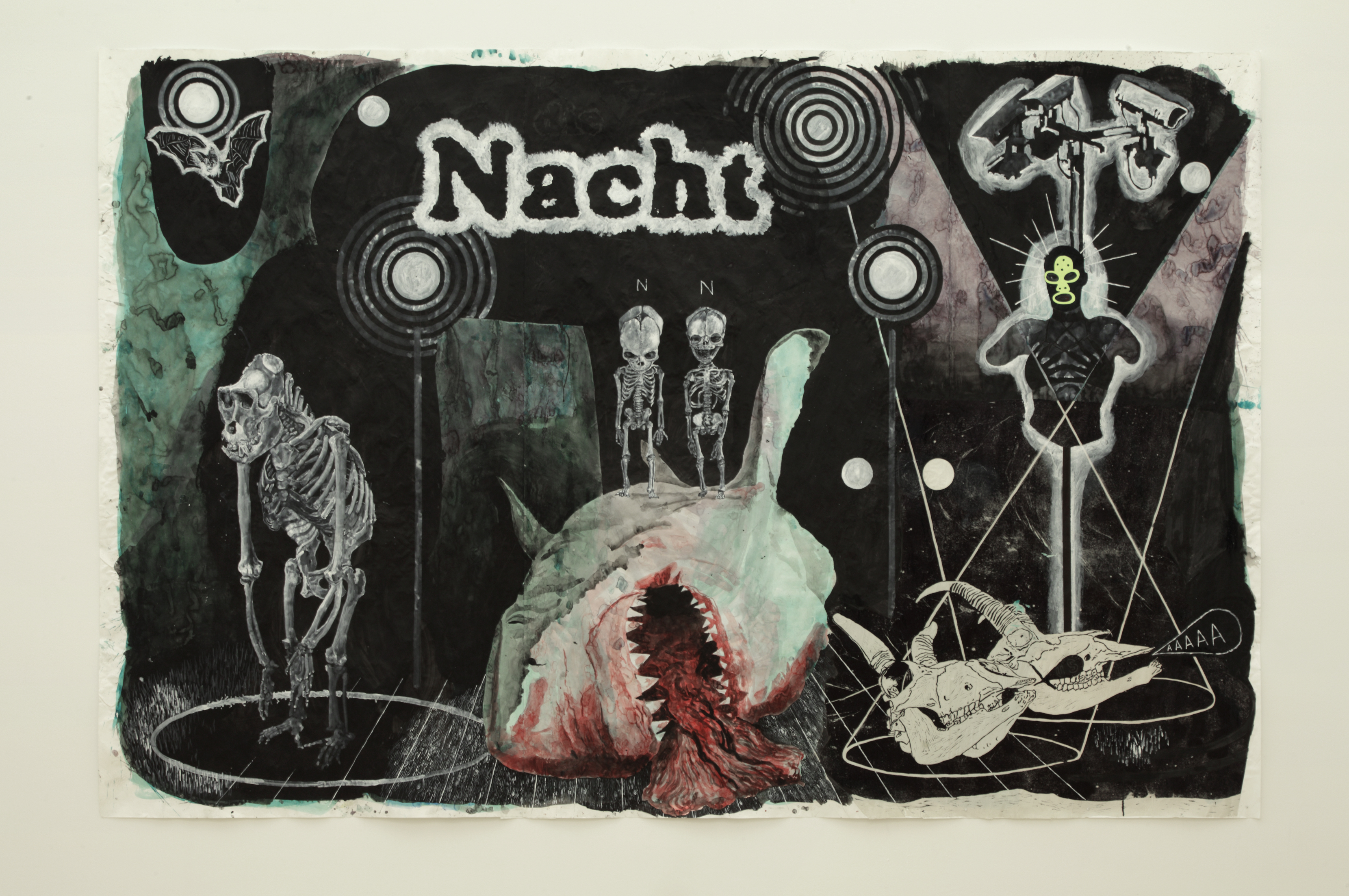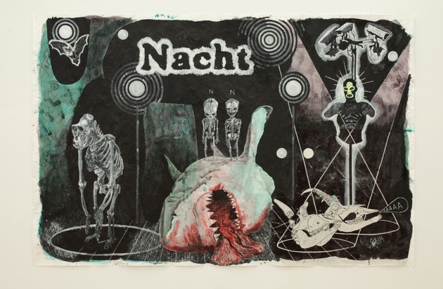 Beides bildet den Angelpunkt für die thematische Ausstellung, in deren Zentrum eine einzigartige Werkgruppe von Skulpturen und raumgreifenden Arbeiten des legendären Schweizer Künstlers Martin Disler (1949-1996) steht. Darum gruppieren sich imposante wie unheimliche Werke u.a. von Damien Deroubaix, Jutta Koether, Mona Hatoum oder Josef Felix Müller. Erweitert werden die zeitgenössischen Positionen durch Werke Alter Meister: die bedeutenden Graphikzyklen Die heimliche Offenbarung Johannis von Albrecht Dürer (1471-1528) bzw. Les Grandes Misères de la guerre von Jacques Callot (1592-1635), die im Dialog mit den Werken der Gegenwart über Jahrhunderte hinweg ein beeindruckendes Panorama von gesellschaftlicher Verwerfung und menschlicher Abgründe enthüllen.