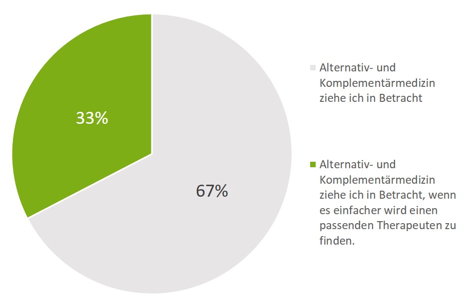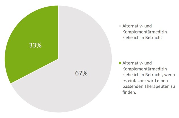 Aufgrund des undurchschaubaren Angebots nutzen viele potenziell Interessierte die Alternativ- und Komplementärmedizin nicht: Ein Drittel aller Personen, die Alternativ- und Komplementärmedizin in Betracht ziehen, fühlen sich bei der Suche im Therapeuten-Dschungel überfordert.