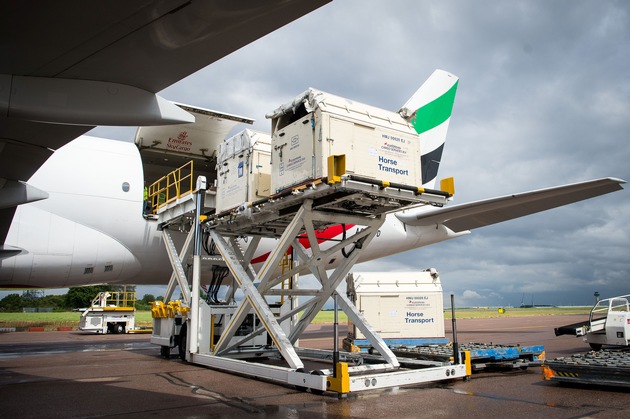 Avec 34 chevaux à bord venant de 10 pays, le fret équin valant plusieurs millions a été chargé sur des palettes personnalisées pour le vol d'une durée de presque 12 heures, à bord d'un Boeing 777-F SkyCargo de la compagnie Emirates, qui a décollé du Royaume-Uni à 15h20 heure locale.