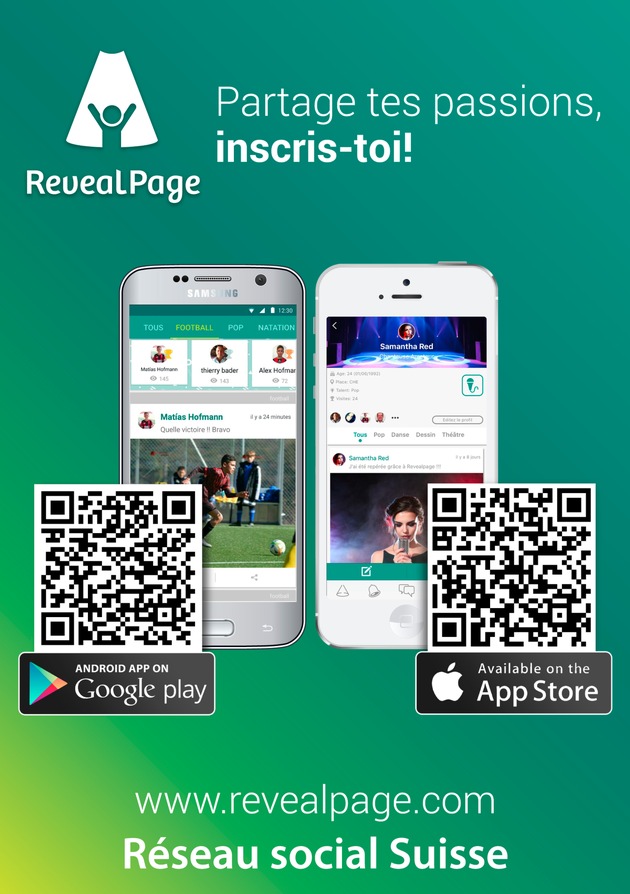 RevealPage, le nouveau réseau social révolutionnaire réunissant passions et talents voit le jour à Lausanne. Il s'adresse, aux sportifs, aux artistes, aux scientifiques, aux coach, aux professeurs, aux étudiants, aux jeunes, à toute personne qui souhaite mettre en réseau ses compétences et les échanger avec d'autres ayant les mêmes intérêts. RevealPage a pour ambition de se connecter à l'ensemble de la planète afin de rapprocher l'humanité par le partage d'un point de ralliement qu'est la passion.