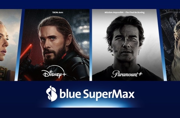 - blue SuperMax vereint neu vier grosse Streaminganbieter in einem Abo: HBO Max, Disney+, Paramount+ und Sky Cinema.