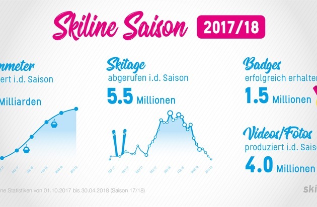 Nicht nur die kontinuierlich ansteigende Anzahl der Skiline User lässt die Konkurrenten von Alturos Destinations neidisch auf das Unternehmen blicken, sondern auch deren Fleiß beim Sammeln von zurückgelegten Höhenmetern - es waren unglaubliche 25 Milliarden, was ungefähr der 110-fachen durchschnittlichen Distanz zwischen der Erde und dem Mars entspricht. Mit 68 Millionen Liftfahrten und 4 Million aufgenommenen bzw. geschossenen Videos & Fotos gibt es weitere Kennzahlen, die zeigen wie aktiv die größte Wintersport-Community der Welt ist.