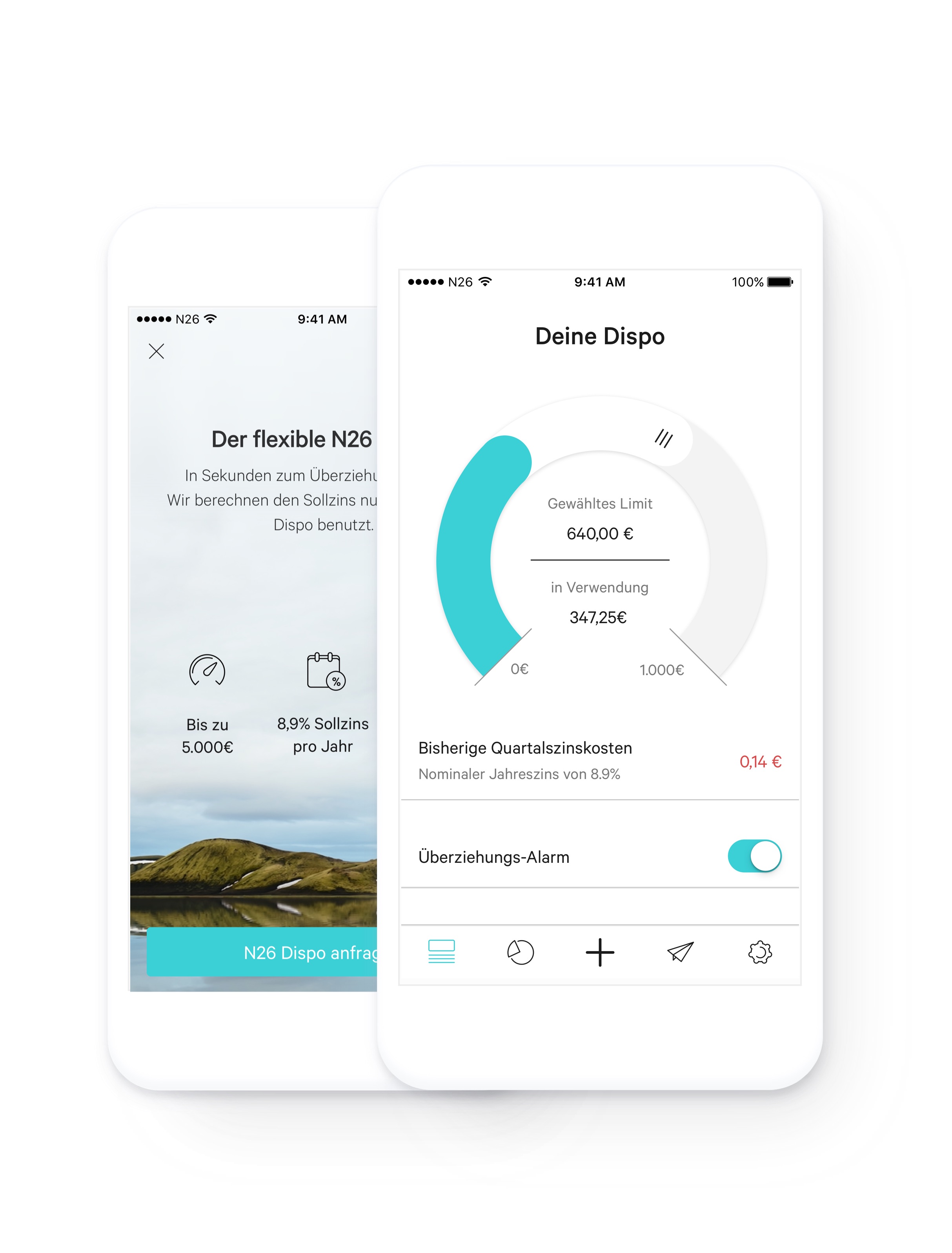Der ebenfalls ab sofort verfügbare Überziehungsrahmen bis zu einem Betrag von 5.000 Euro und einem Zinssatz von 8.9% gibt N26-Kunden mehr finanzielle Flexibilität. Der Überziehungsrahmen kann in wenigen Schritten direkt in der App eingerichtet werden. Die Bonitätsprüfung erfolgt in wenigen Sekunden. Bei Genehmigung können Kunden sofort über den Betrag verfügen. Das persönliche Limit kann jederzeit direkt in der App angepasst werden. Kunden haben zudem in der App ständig einen Überblick über die anfallenden Zinsen. Die Überziehungszinsen werden in einer Rechnung separat ausgewiesen und dem Konto quartalsweise belastet.
