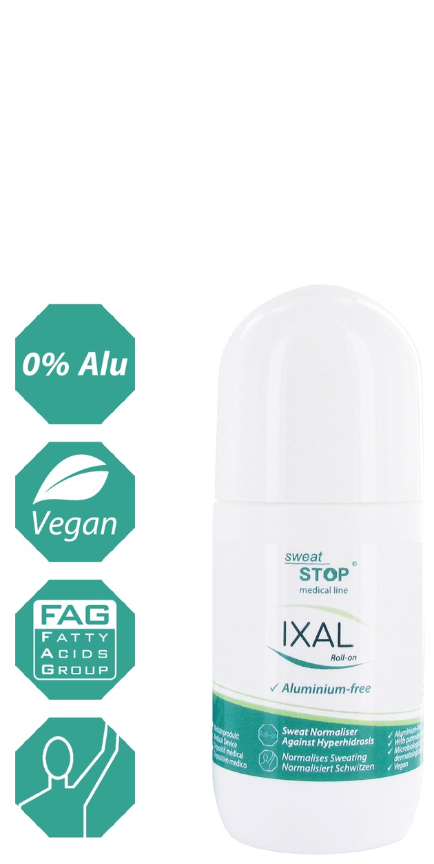 Insbesondere im Hinblick auf die Wirkweise ist IXAL Roll-on neuartig: Es reduziert übermäßiges Schwitzen und normalisiert die Schweißabsonderung auf eine natürliche und physiologische Weise ohne die Poren der Schweißdrüsen zu verschließen und dies ganz ohne Aluminium. IXAL wirkt nachweislich gegen übermäßiges Schwitzen, sogenannter Hyperhidrose. Durch die Verminderung der Feuchtigkeit wird gleichzeitig die Entstehung geruchsbildender Bakterien verringert und verzögert.