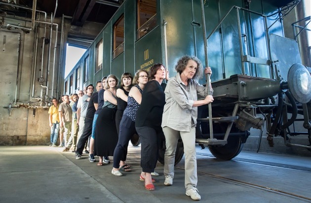 Nach jahrelanger Vorbereitung, vielen Proben und Schweiss wurde an der heutigen Medienkonferenz vom 21. Juni der offizielle Startschuss zum nationalen Theaterereignis «1918.CH - 100 Jahre Landesstreik» gegeben. Denn das Produktionsteam um die künstlerische Leiterin Liliana Heimberg schob einen historischen Eisenbahnwagen an den prägnanten Aufführungsort der Alten Hauptwerkstätte in Olten. Einst wurden an diesem Ort auch Eisenbahnwagen gebaut. Der C3 8395, der nun der «Star» des Medienanlasses war, ist allerdings 1905 in der Schweizerischen Wagons- und Aufzugfabrik AG in Schlieren gefertigt worden, er gehört heute zum Bestand von SBB Historic und wird im Stück eine Rolle spielen. «Wahrscheinlich kam auch dieser Eisenbahnwagen während des Landesstreiks irgendwo zum Stillstand. Er ist somit ein Zeuge jenes historischen Moments der Schweizer Geschichte von 1918. Wir freuen uns sehr, dass SBB Historic uns von Anfang an unterstützt hat», sagt die künstlerische Leiterin Liliana Heimberg.