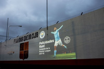 Zu den Orten gehörten die Favelas in Sao Paulo, wo Gabriel Jesus das Fußballspielen lernte, der Strand in Gran Canaria, wo der junge David Silva seine Fertigkeiten übte, und der Heimatort von Kevin de Bruynes erstem Club in Belgien, wo jetzt jedes Jahr junge Fußballer um den "Kevin de Bruyne Cup" konkurrieren. Eine Projektion fand auch in Deutschland auf einem lokalen Wahrzeichen statt, das sich Leroy Sané auf den Rücken tätowieren ließ. Projektionen fanden auch an verschiedenen Stellen in der City Football Academy in Manchester statt, um die jungen Spieler anzuerkennen, die diese Akademie absolviert haben, um in dieser Saison mit dem ersten Team anzutreten.