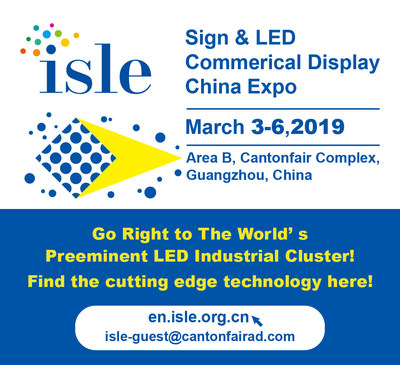 Die International Signs & LED Exhibition 2019 (ISLE oder "die Messe") findet vom 3. bis 6. März im Bereich B des Canton Fair Complexes in Guangzhou (China) statt und bietet eine erstklassige industrielle Plattform für Beschilderung und LED-Technologie.
