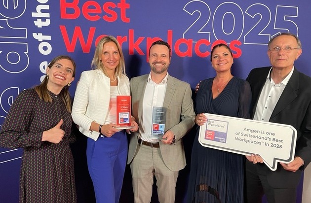 Das Biotechnologieunternehmen Amgen wurde vom Great Place To Work® Institut erneut als einer der besten Arbeitgeber der Schweiz ausgezeichnet. In der Kategorie "Medium" (100-249 Mitarbeitende) zählt Amgen 2025 mit dem 2. Platz zu den Topplatzierten. Zusätzlich erhält Amgen den "Spotlight Award" in der Kategorie "Values" - eine besondere Auszeichnung für Organisationen, die durch gelebte Werte, starke Führung und eine inspirierende Innovationskultur hervorstechen und als Vorbild für andere Unternehmen dienen.