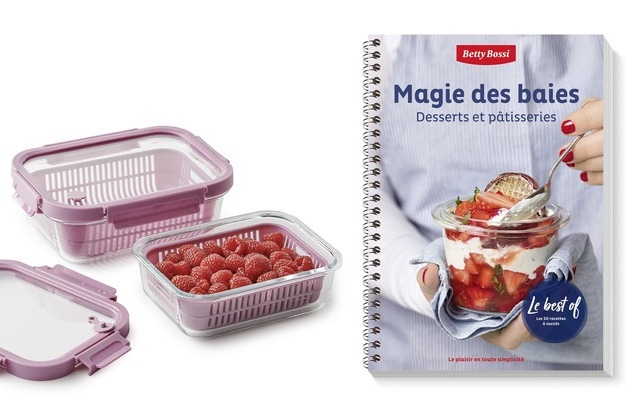 NOUVEAUX PRODUITS: Livre de desserts «Magie des baies» avec boîtes de conservation assorties