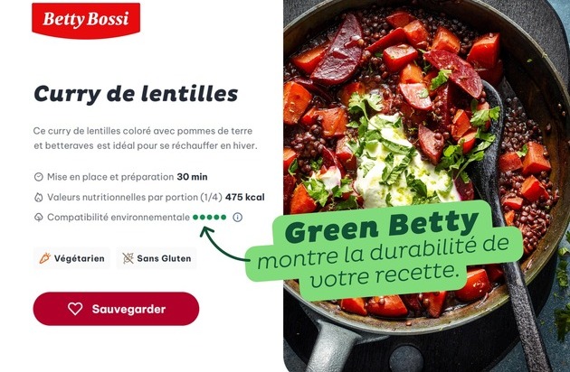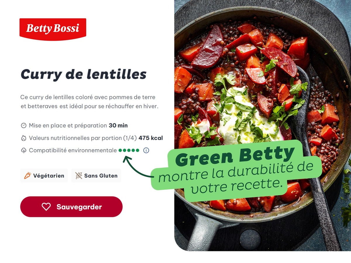 Cette échelle d'évaluation offre aux utilisatrices et utilisateurs un outil simple pour faire des choix alimentaires plus responsables et leur montre à quel point une alimentation respectueuse de l'environnement peut être à la fois attrayante et facile à adopter au quotidien. Green Betty a le potentiel d'influencer durablement les habitudes culinaires en Suisse et de réduire ainsi l'impact écologique de notre consommation. En effet, l'alimentation représente plus d'un quart de l'empreinte environnementale individuelle, et le site Betty Bossi enregistre 4,8 millions de visites chaque mois. Betty Bossi poursuit le développement de cette initiative afin d'enrichir en permanence son offre de recettes respectueuses de l'environnement. De plus, la rédaction interne s'appuie désormais sur ce nouveau modèle d'évaluation pour intégrer l'impact environnemental dès la création de nouvelles recettes.