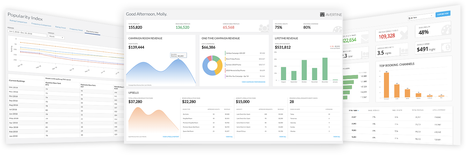 Auf Gruppenebene erleben Hoteliers eine Reihe unterschiedlicher Herausforderungen, die es zu bewältigen gilt. Revinate ist für Gruppen konzipiert und ermöglicht eine objektübergreifende Transparenz mit den richtigen Kontrollen, Arbeitsabläufen und Informationen, um das Erlebnis für Gäste einfach und effektiv zu optimieren. Revinate ermöglicht die Berichterstattung für alle wichtigen Interessengruppen, einschließlich Eigentümer, Vermögensverwalter, regionale Führungskräfte, Geschäftsführer und mehr.
