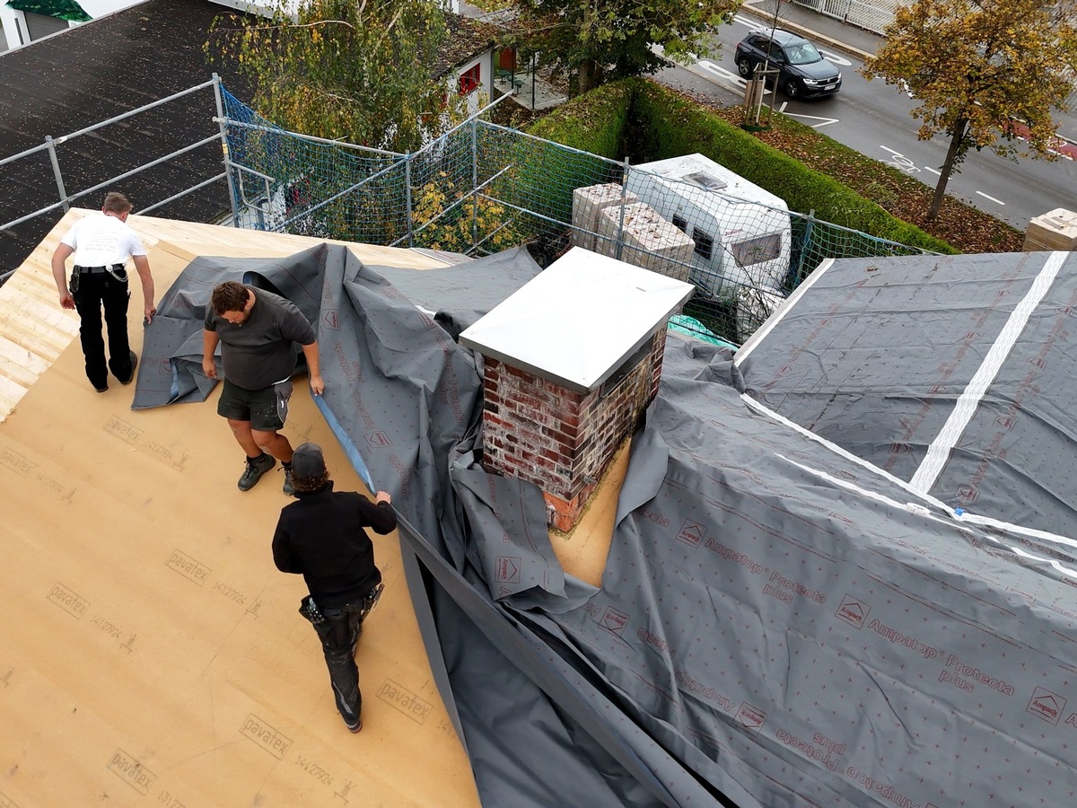 Die Grundlage dafür bildet die bewährte Dachbahn Ampatop® Protecta, die seit Jahren erfolgreich in der Baupraxis eingesetzt wird. Neu ist die massgeschneiderte 3D-Vorkonfektionierung gemäss Montageplänen: Jedes Bauteil, jede Gaube und jeder Ausschnitt wird millimetergenau vorkonfektioniert und kommt montagefertig auf die Baustelle. Das reduziert nicht nur die Verlegezeit drastisch, sondern sorgt auch für höchste Qualität und sofortige Regendichtheit.
