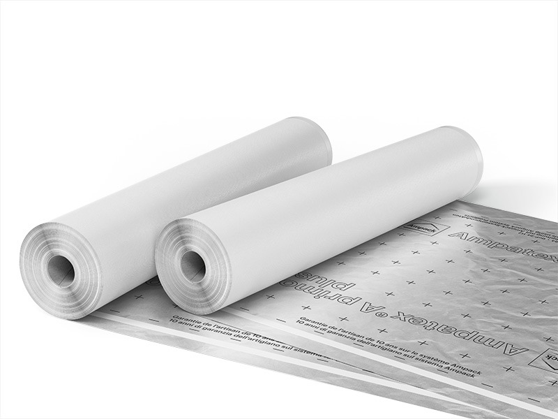 - Ampatex® A primo plus (Weltneuheit): Unsere Hochleistungsbahn ist die erste nicht brennbare, echte Dampfbremse mit sd-Wert 50 m. Diese Membrane vereint bauphysikalischen Feuchteschutz, Wärme- und Strahlungsreflexion mit verbessertem Brandschutz.