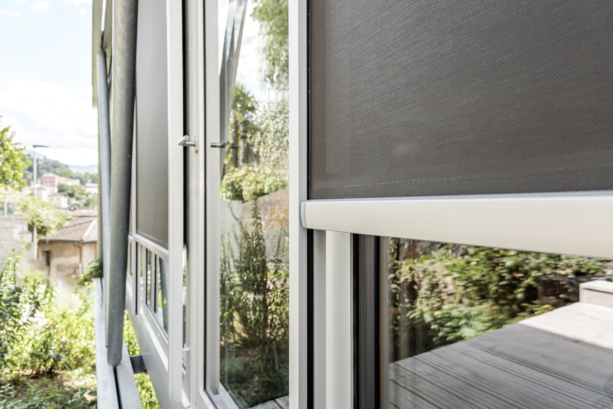 En una colina sobre Bellinzona, "D-Vision" es un proyecto residencial moderno y energéticamente autosuficiente que destaca por su arquitectura y sostenibilidad: los exclusivos apartamentos se apoyan sobre pilares de hormigón armado e impresionan con sus volúmenes escultóricos y 283 m² de superficies de vidrio. Estos no solo crean una identidad visual sólida, sino que también abren una vista panorámica de 180° sobre el valle del Ticino. Gracias a módulos fotovoltaicos de gran escala, entre otras cosas, el edificio logra un funcionamiento sin emisiones. Comodidad y eficiencia energética adicionales se proporcionan los toldos automatizados Griesser Solozip para la fachada, que aumentan el confort térmico, protegen contra el sobrecalentamiento y subrayan la expresión arquitectónica.