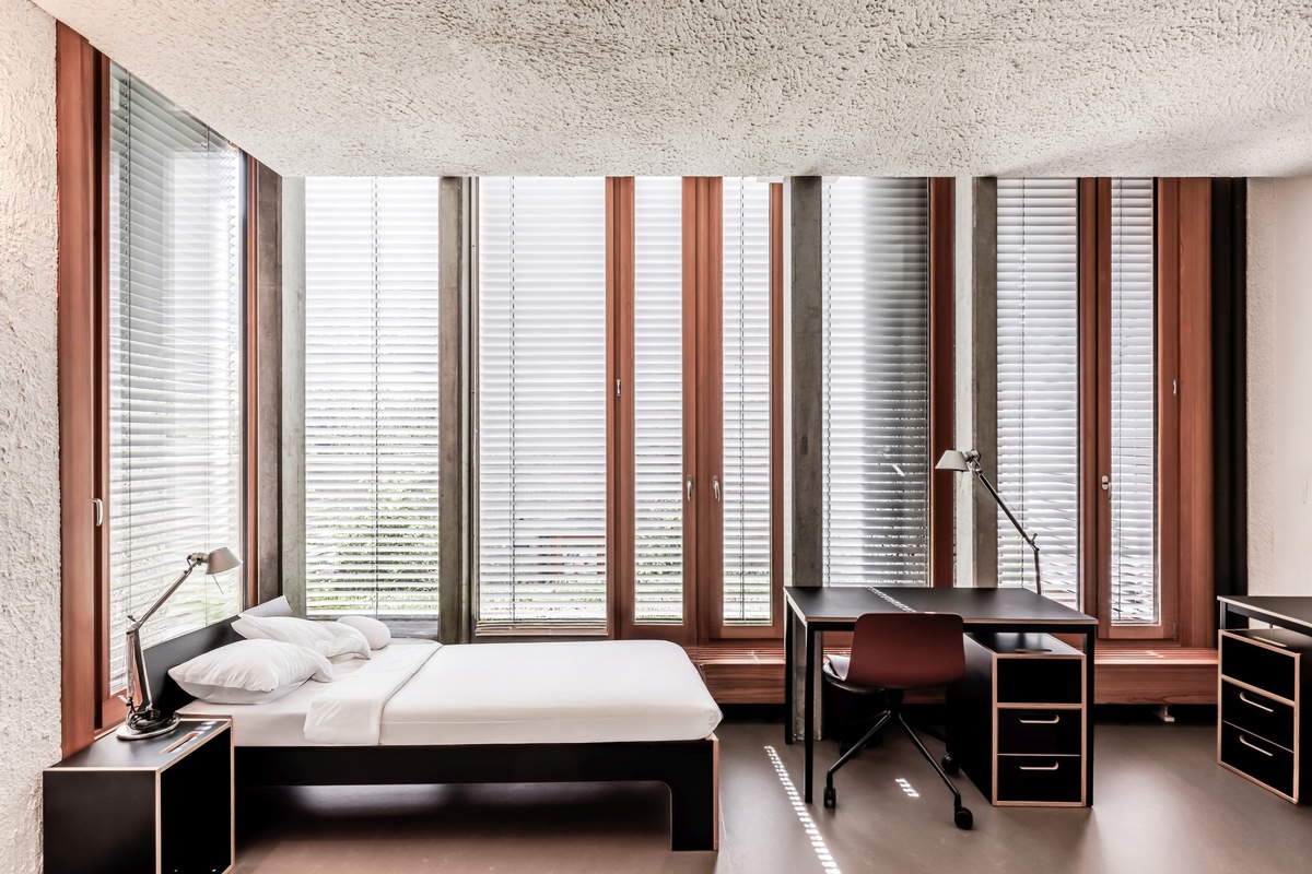 Mit der umfassenden Instandsetzung des Konvikts der Bündner Kantonsschule wurde ein architektonischer Solitär der Churer Nachkriegsmoderne in die Gegenwart überführt. Das Gebäude gilt als einer der wenigen bedeutenden Zeitzeugen der skulpturalen Richtung dieser Epoche; seine plastische Sichtbetonfigur, die Reaktion auf die schwierige Topografie und die von Le Corbusier geprägte Licht- und Proportionsauffassung machen seine besondere Bedeutung aus. Die eingesetzten Griesser Lamellenstoren Aluflex fügen sich genau in diese architektonische Logik ein: Sie ermöglichen eine präzise Steuerung des Tageslichts, unterstützen die filigrane Fassadenwirkung und schaffen zugleich mehr visuellen und thermischen Komfort im Alltag des Konvikts.