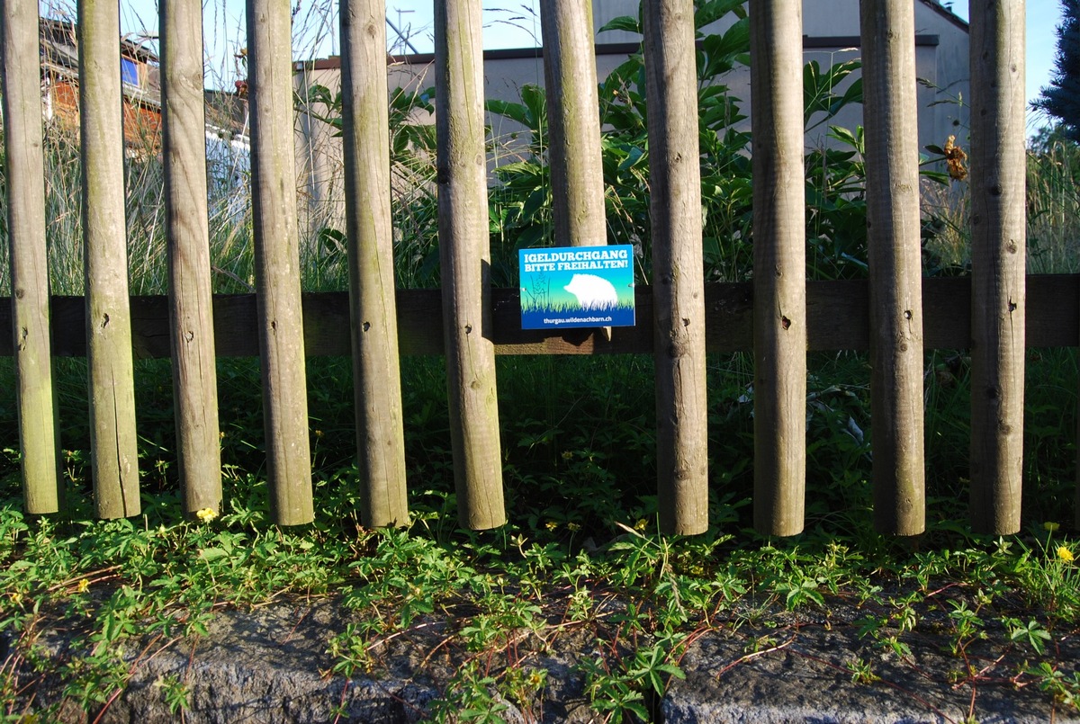 Wer einen Durchgang einrichtet, kann diesen kennzeichnen und bei einem der Trägerorganisationen von Wilde Nachbarn Solothurn eine kostenlosen Igelplakette beziehen. Die Plakette macht auf das Thema Vernetzung aufmerksam – und verhindert zugleich, dass die Öffnung später aus Unwissenheit wieder verschlossen wird.