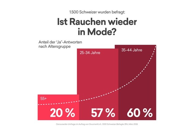 Die Umfrage macht auch deutliche Unterschiede zwischen den Altersgruppen sichtbar. Insbesondere Erwachsene im Alter von 35 bis 44 Jahren zeigen ausgeprägte Fehleinschätzungen. Parallel dazu empfinden sie Rauchen häufiger als gesellschaftlich toleriert. So stimmt mehr als die Hälfte der Schweizer (52,3%) der Aussage zu, dass Rauchen wieder „in Mode" sei – ein Wert, der weit über denen aus den USA (16,6%), Großbritannien (22%) und Deutschland (26,4%) liegt.