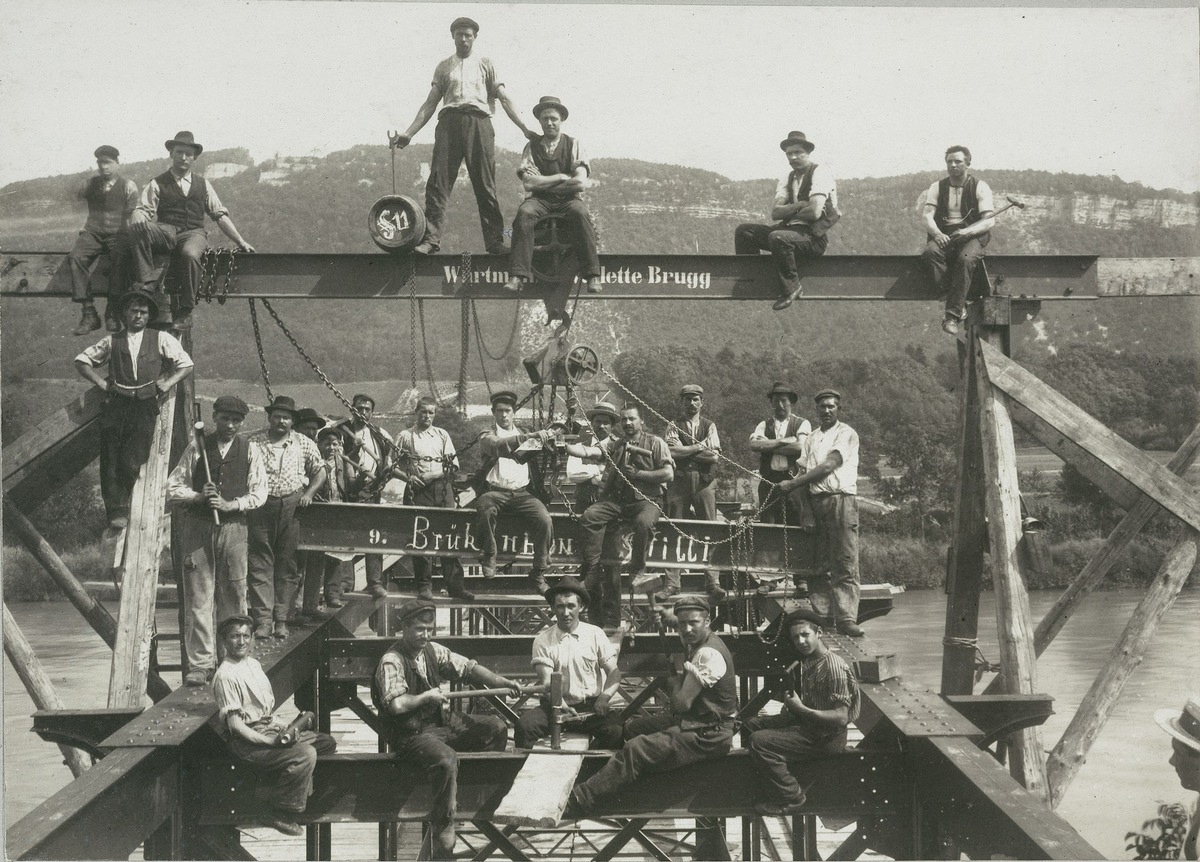 Ein weiteres neu entwickeltes Bildpaar ist an der Fassade der Aargauer Kantonsbibliothek zu sehen. Ausgangspunkt ist ein historisches Bild des Brückenbaus aus dem Staatsarchiv Aargau, das Aufbruch, Ingenieurskunst und Pionierleistung symbolisiert. Die Gegenüberstellung lädt dazu ein, über Fortschritt, Zeitwahrnehmung und die Macht visueller Narrative nachzudenken.