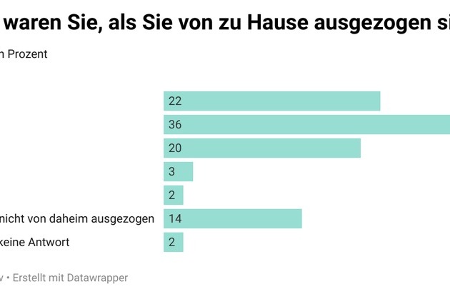 Als häufigster Grund für den Auszug wird das Zusammenziehen mit dem Partner oder der Partnerin genannt (27 Prozent), gefolgt von Ausbildung oder Studium (17 Prozent) und dem Wunsch nach mehr Unabhängigkeit (16 Prozent). Im Tessin spielt das Studium oder die Berufsausbildung offenbar eine deutlich zentralere Rolle beim Verlassen des Elternhauses: 28 Prozent der Befragten im Südkanton nennen die Ausbildung als Hauptgrund für ihren Auszug – deutlich mehr als in der Romandie (14 Prozent) und der Deutschschweiz (17 Prozent). Konflikte mit den eigenen Eltern gaben nur bei 5 Prozent den Ausschlag für den Auszug und «rausgeworfen» wurde lediglich ein Prozent der Befragten.