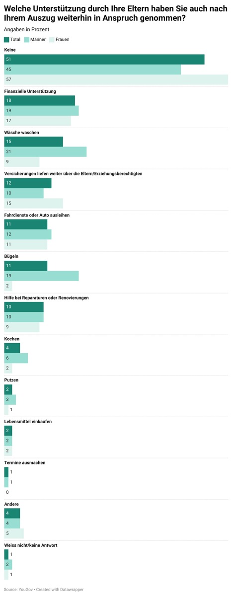 Ein Fünftel der ausgezogenen Männer holt sich Unterstützung bei der Wäsche