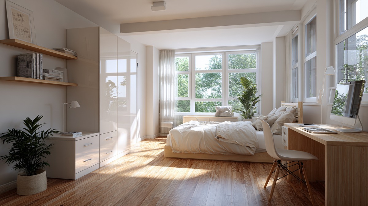 Erneut besonders oft zu sehen sind helle Räume mit grosszügigem Tageslichteinfall. Die Wände bestehen wiederum überwiegend aus Gipskartonplatten und der Boden aus Parkett, insbesondere in Wohn- und Schlafräumen, während Plattenboden in Küche und Bad dominieren. Insgesamt deuten viele der Wohnungsinserate auf eine schlichte, praktische, helle und etwas uniforme Ästhetik hin.