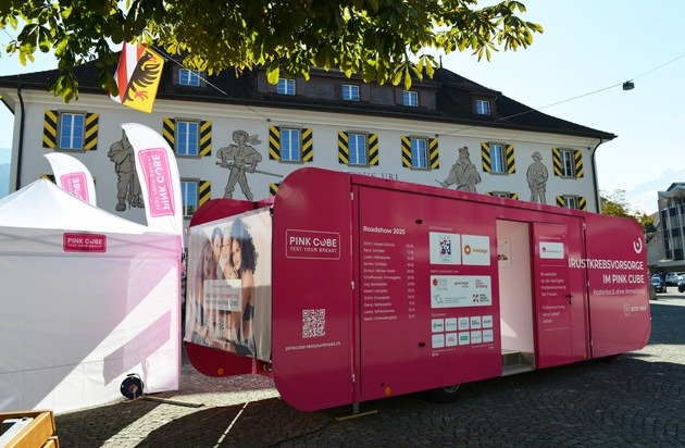 Altdorf, 2. Oktober 2025 - Alle sechs Stunden stirbt in der Schweiz eine Frau an Brustkrebs. Früherkennung kann Leben retten. Um darüber auzuklären, macht der PINK CUBE, ein leuchtend pinkes ärztliches Beratungszimmer, heute in Altdorf auf dem Lehnplatz Halt und informiert über Brustkrebsfrüherkennung, bietet persönliche Beratung, kostenlose Tastuntersuchungen und vieles mehr. M edizinischer Partner ist das Kantonsspital Uri.