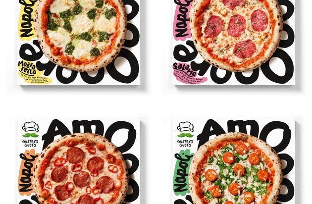 Pizzahersteller Gustavo Gusto bringt mit "Amore Napoli" eine neue Pizza-Range auf den Markt - in vier leckeren Sorten: "Mozzarella", "Salame", "Rucola" und "Diavola".