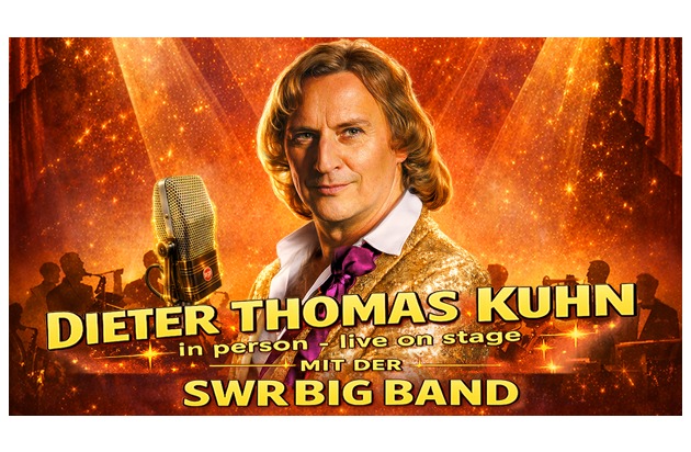 Dieter Thomas Kuhn und die SWR Big Band spielen am 24. und 25. Juli im Sparkassen Carré, Mühlbachäckerstraße 2, Tübingen. Tickets können ab 27.02.2026 um 11 Uhr exklusiv über Reservix gekauft werden.