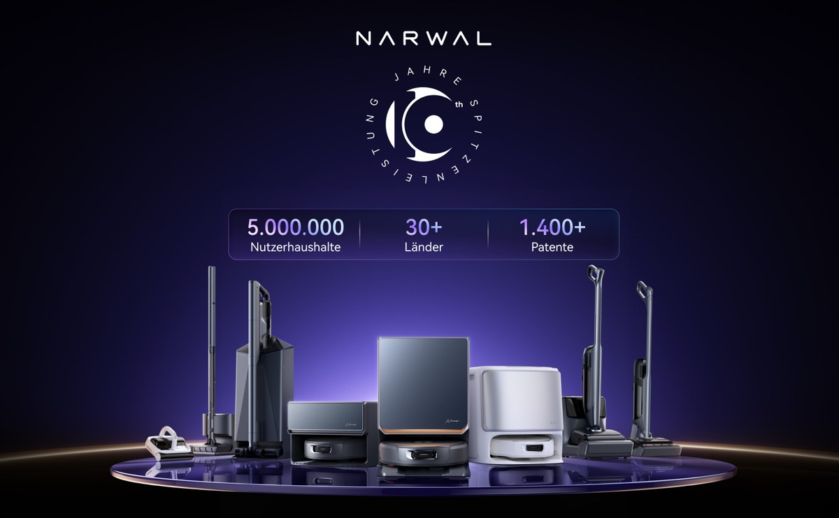 Narwal entwickelt intelligente Reinigungstechnologien, die den Alltag effizienter und komfortabler machen. Durch intensive Forschung entstehen innovative Lösungen wie der selbstreinigende Wischmopp, das KI-gestützte DirtSense-System und die Zero-Tangle-Technologie. Dabei verbindet Narwal funktionale Gestaltung, ästhetisches Design und intuitive Bedienung. Laut IDC zählt Narwal heute zu den fünf weltweit führenden Marken für intelligente Reinigungsroboter, mit Produkten in über 30 Ländern, die mehr als 5 Millionen Haushalte in Europa, Nordamerika, Südkorea und Australien unterstützen. Für weitere Informationen besuchen Sie bitte: https://de.narwal.com/
