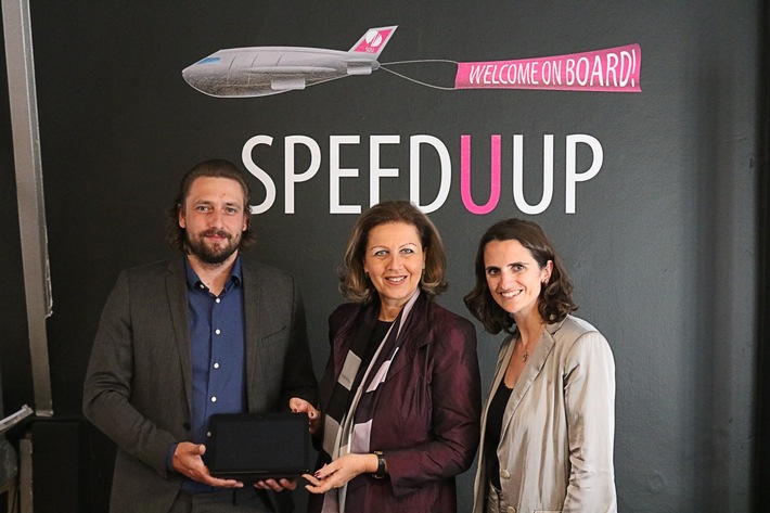 MedienmitteilungVom kleinen Penthouse-Wohnzimmer ins 350 m² Industrie-Loft - volle Fahrt voraus für den digitalen Tourismus2019-05-13T12:20:16Innsbruck (ots) - Wir sind aus allen Nähten geplatzt! Zeit für den Umzug. Die Speed U Up, Agentur für digitale Services und Innovationen im Alpentourismus, ist in drei Jahren von vier auf 16 MitarbeiterInnen gewachsen. Es wurde also zu eng im 4. Stock der Museumstraße 19. Nur wenige Meter weiter in der Heiliggeiststraße 4 fand die Speed U Up in einer ehemaligen Druckerei nun viel Platz für ihr kreatives Schaffen. Dank Aufrüstung der Infrastruktur mit Glasfaserkabel kann die Agentur nun auch in Immobilien mit Geschichte die Digitalisierung vorantreiben. "Ich freue mich natürlich ganz besonders, wenn junge, innovative Firmen so erfolgreich sind und wachsen." würdigt Wirtschaftslandesrätin Patrizia Zoller-Frischauf die Entwicklung der Speed U Up. Sie verspricht, auch in Zukunft die nötige Infrastruktur für den Fortschritt zu fördern. "Wir freuen uns riesig, euch heute unser Loft zeigen zu können. Für uns ist es ein großer Schritt von unserem 'Wohnzimmer' in diese großzügigen Räumlichkeiten. Wir haben noch viel vor und hier haben wir die richtige Atmosphäre gefunden, um weiterhin digitale Pionierleistungen zu erbringen", freut sich Geschäftsführerin Eva-Maria Hänel sichtlich. Von der Druckerei zum digitalen Pionier Das neue Headquarter der No.1 im digitalen Alpentourismus findet sich nun in der Heiliggeiststraße 4 in einem Innenhof. "Wir sind hier in einer ehemaligen Druckerei. Dass wir jetzt in ein solch geschichtsträchtiges Gebäude ziehen können, wo ja schon früher das gemacht wurde, was wir heute in einer modernen, digitalen Form weiterführen, macht besonders stolz. Hier spüren wir unsere Wurzeln und können diese in neue digitale Innovationen transformieren", so Geschäftsführer Matthias Dengg. Welche das sind, zeigen unter anderem Alexa und Google Home mit ihren Skills und Actions "Tastes of Austria" oder "Tirol-Skill". Einfach mal das Handy oder Alexa fragen: "Alexa, starte "Geschmack von Österreich". Industrie-Schick und Denkraum Schon der Zugang über die Metalltreppe lässt den Industrie-Schick der neuen Speed U Up-Zentrale erahnen. Innen erwarten Kunden, Geschäftspartner und allen voran das Team bis zu vier Meter hohe Räume - Platz für kreatives Schaffen. Elemente der ehemaligen Druckerei sind noch zu erkennen, wie ein ehemaliger Lift für Druckplatten wo heute Laser-Drucker stehen oder stabile Eisenstangen, die kurzerhand als Garderobe benutzt werden. Die Speed U Up ist jedenfalls im neuen Zuhause angekommen und bereit mit Vollgas in Richtung digitalen Tourismus wieder abzuheben! Über Speed U Up: Als Digital Service & Solution Provider ist Speed U Up spezialisiert auf Online-Kommunikation für den Alpentourismus. Unter dem Motto "Digital Pioneering" fokussiert sich das 2016 in Innsbruck angesiedelte Unternehmen auf zukunftsweisende Ideen, Konzepte und Technologien - immer mit dem Ziel, diese in den Alpentourismus zu integrieren. Aktuelle Projekte liegen in den Bereichen Social Media, Guerilla- und Performance-Kampagnen, Content Produktion und Distribution, sowie Amazon Alexa Skills. Die Kunden sind in unterschiedlichen Feldern des Tourismus angesiedelt: Neben namhaften Tourismusverbänden wie dem TVB Mayrhofen, dem TVB Wilder Kaiser, Zermatt Tourismus und dem TVB Seefeld zählen auch Unternehmen wie das Alpenresort Schwarz, die Mayrhofner Bergbahnen, die Tirol Werbung, die Österreich Werbung, Bayern Tourismus sowie die Deutsche Bahn und ÖBB zum Portfolio. Zusätzlich teilt das Speed U Up Team sein Wissen zu den digitalen Themen im Tourismus regelmäßig bei Vorlesungen an der HTW Chur sowie am MCI und an der Universität Innsbruck. Speed U Up wurde im letzten Jahr mit dem Deutschen Preis für Onlinekommunikation in Berlin ausgezeichnet und ist Preisträger des Tirolissimo 2017. Kontakt: Speed U Up GmbH Permalink: