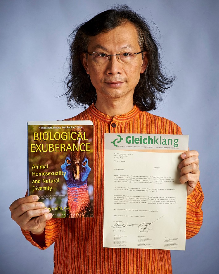 MedienmitteilungWeihnachtsgeschenk für Ugandas Präsidenten: Buch über Homosexualität im Tierreich2014-12-21T10:11:33Hannover (ots) - Für den Präsidenten Ugandas Yoweri Museveni ist Homosexualität unnatürlich. In seinem Land lässt er Homosexuelle strafrechtlich verfolgen und einsperren. Gemeinsam mit fundamentalistischen Christen befürchtet er, dass erwachsene Homosexuelle Kinder in die Homosexualität rekrutieren könnten. Die Online-Partnerbörse www.Gleichklang.de hat deshalb dem Präsidenten Ugandas ein besonderes Geschenk zu Weihnachten gesandt. Das Geschenk ist das Buch des kanadischen Biologen Bruce Bagemihl über Homosexualität im Tierreich und natürliche Vielfalt (Biological Exuberance: Animal Homosexuality and Natural Diversity). In dem Buch zeigt Bagemihl auf, dass homosexuelles Verhalten bei mehr als 450 Tierarten dokumentiert ist. Das Buch wurde von der Dating-Plattform an das Präsidialamt in Kampala (Uganda) und zusätzlich an die Botschaft Ugandas in Berlin gesandt. Im Begleitschreiben weisen der Geschäftsführer von Gleichklang, Seksan Ammawat, und der Psychologe, Dr. Guido F. Gebauer, auf den Widerspruch hin, eine sexuelle Orientierung, welche bei Mensch und Tier universal auftrete, für unnatürlich zu erklären. Sie drücken die Hoffnung aus, dass der Präsident Ugandas in die Fußstapfen des großen Nelson Mandela treten und homosexuelle Menschen akzeptieren werde. Denn warum sollten Menschen, die sich lieben, ihr Leben in einer Gefängniszelle verbringen? Seksan Ammawat erwartet keine Antwort durch den ugandischen Präsidenten. Aber vielleicht erfahre Museveni von dem Eingang des Buches. Dies könnte für ihn ein Anreiz sein, sich wenigstens mit der Tatsache der starken Verbreitung homosexuellen Verhaltens in der Natur auseinanderzusetzen, gibt sich Seksan Ammawat optimistisch. Kontakt: Gleichklang limited Permalink: