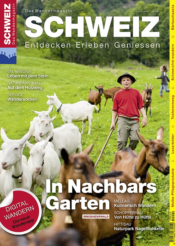 MedienmitteilungIn Nachbars Garten - Wandern im Bregenzerwald2016-03-31T09:30:23Solothurn (ots) - Der Bregenzerwald, im österreichischen Bundesland Vorarlberg, liegt in unmittelbarer Nähe zur Schweiz und der Schritt über die Grenze ist schnell einmal gemacht. Empfangen wird man von freundlichen Nachbarn und einer intakten Natur- und Kulturlandschaft. Die Dörfer überraschen mit einer Kombination aus alter und neuer Architektur, die Restaurants mit regionalen Spezialitäten und die Aussichtsberge mit einer unglaublichen Fernsicht bis zum Bodensee. Das Wandermagazin SCHWEIZ zeigt die schönsten Touren. Aus dem Inhalt - Kulinarische Wanderungen - Molkepflegeprodukte - Die schönsten Leserbilder - Auf dem Holzweg im Naturpark Thal - Bärlauchpasta schnell gemacht - Schmerzfrei wandern - Tobleroneweg - Wandersocken - Leben mit dem Stein Die Ausgabe «Bregenzerwald» des Wandermagazin SCHWEIZ ist ab sofort an allen grossen Kiosken oder direkt beim Rothus Verlag erhältlich (Preis CHF 14.80). www.wandermagazin.ch, wandermagazin@rothus.ch, Tel. 032 626 40 29. Kontakt: Download Titelseite und Medienmitteilung des aktuellen «Wandermagazin Permalink: