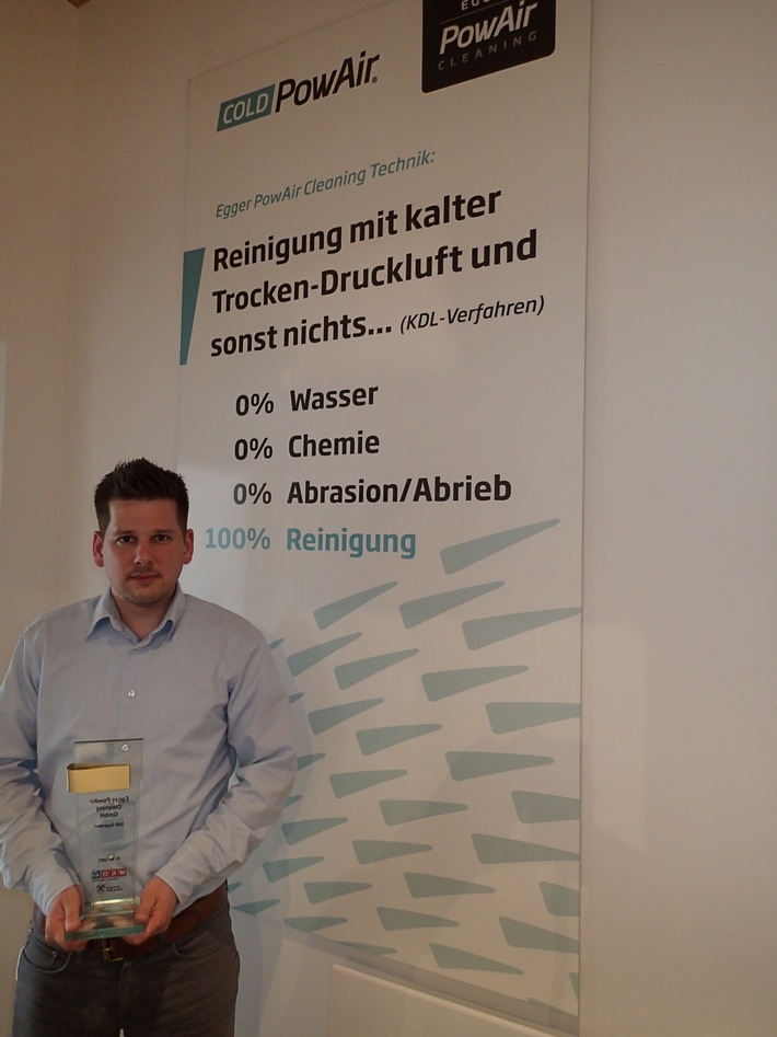MedienmitteilungEgger PowAir Cleaning GmbH von Wirtschaftskammer Österreich geehrt - BILD2017-06-01T15:29:46Robert Egger, Gründer und Geschäftsführer der Firma Egger PowAir Cleaning GmbH nahm die Ehrung für alle Mitarbeiterinnen und Mitarbeiter entgegen. Eugendorf (ots) - Robert Egger, Gründer und Geschäftsführer der Firma Egger PowAir Cleaning GmbH nahm die Ehrung für alle Mitarbeiterinnen und Mitarbeiter entgegen. Der Präsident der Wirtschaftskammer Österreich, Dr. Christoph Leitl schrieb: "Sie (Robert Egger) sind ein `Mutmacher` für viele andere Unternehmer in Österreich ... . Dank und Anerkennung für Spitzenleistungen in Innovation und Exzellenz ?!" Egger PowAir Cleaning GmbH wurde als Start-Up im Juli 2014 von Robert Egger mit 5000 Euro gegründet. Im ersten vollen Geschäftsjahr 2015 erzielte die Firma bereits 1.2 Millionen Euro Umsatz. Im I. Quartal 2017 beteiligte sich STRABAG PFS mit 75%. Robert Egger wurde auf Jahre als Geschäftsführer bestellt. "Der Roll-Out ist durch die Beteiligung jetzt noch rascher möglich. Für die Industrie und Produktionsbetriebe zählt Größe. Egger PowAir Cleaning wird die Rolle als Technologie- und Preisführer weiter ausbauen. 7 Tage die Woche - 24 Stunden am Tag (24/7), das ist unser Dienstleistungslevel für die Industrie, in ganz Europa," erklärt Robert Egger. Industrie Groß-Anlagen und Produktionsmaschinen mit kalter Trocken- Druckluft und sonst nichts ... zu reinigen war die zündende Idee von Robert Egger. Das KDL-Verfahren wurde von Egger serienreif in der Praxis der Industrieanlagen-Reinigung 2014 eingeführt. Heute ist dies Stand der Technik in diesem Bereich. 0% Wasser - 0% Chemie - 100% Reinigung mit kalter Trockendruck-Luft, das ist der USP von Egger PowAir Cleaning. Bild(er) zu dieser Aussendung finden Sie im AOM / Originalbild-Service sowie im OTS-Bildarchiv unter http://bild.ots.at Rückfragehinweis: Anna Bouscher Office@eggerpowair.com Tel.: +43 (0)6225 288 10 Digitale Pressemappe: http://www.ots.at/pressemappe/17255/aom *** OTS-ORIGINALTEXT PRESSEAUSSENDUNG UNTER AUSSCHLIESSLICHER INHALTLICHER VERANTWORTUNG DES AUSSENDERS - WWW.OTS.AT *** Permalink:
