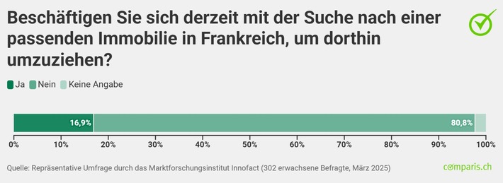 Zürich, 20. März 2025 – Die Romands leiden unter den hohen Wohn- und Lebenshaltungskosten. Gemäss einer repräsentativen Comparis-Umfrage in der Westschweiz kann sich fast jede dritte befragte Person mit dem Gedanken ans Auswandern anfreunden. Die Zahlen zeigen, dass es nicht nur bei der Überlegung bleibt, sondern dass ein beträchtlicher Anteil der Bevölkerung bereits konkrete Schritte in Richtung eines Umzugs unternimmt: 16,9 Prozent von allen, die sich mit dem Grenzgänger-Gedanken anfreunden können, sind schon aktiv auf der Suche nach einer Immobilie in Frankreich, um dort als Grenzgänger zu wohnen. Das sind 5,1 Prozent der gesamten Umfrage-Stichprobe und entspricht rund 51’000 Westschweizer Haushalten. «Das hat unserer Ansicht nach unter anderem mit den hohen Lebenshaltungs- und Wohnkosten in der Schweiz zu tun», sagt Comparis-Immobilienexperte Harry Büsser.