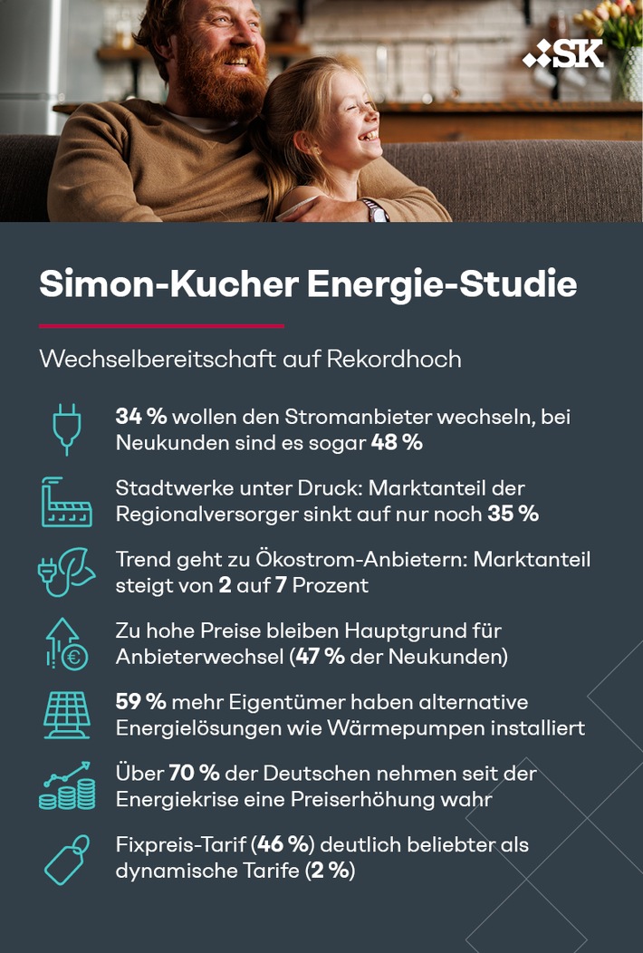 MedienmitteilungEnergie-Studie: Wechselbereitschaft auf Rekordhoch - Kunden stellen ihre Stromanbieter infrage2025-04-15T10:52:47Köln (ots) - Weg von Stadtwerken und lokalen Versorgern, hin zu Ökostrom-Anbietern. Laut der Simon-Kucher Energie-Studie steht der Strommarkt vor einer Wechselwelle. Jeder Dritte plant den Anbieterwechsel, unter Neukunden ist es fast die Hälfte. Nachhaltige Alternativen wachsen rasant, während regionale Versorger trotz ihrer Kundennähe spürbar Marktanteile verlieren. Denn die Energiekrise wirkt nach: Viele nehmen deutliche Preiserhöhungen wahr. Kunden verlassen zunehmend die Grundversorgung. Dynamische Tarife sind noch unbeliebt, Fixpreis-Tarife und Nachhaltigkeit hingegen gefragter denn je.