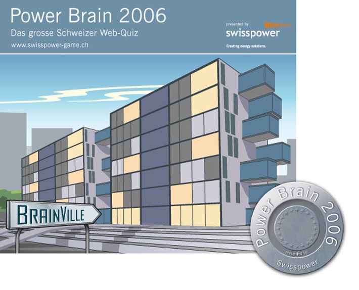http://www.presseportal.ch/de/story.htx?firmaid=100004643 -Unter dem Titel "Power Brain 2006" lanciert Swisspower ein nationales Internetspiel. Appelliert wird an die Geschicklichkeit und an das Allgemeinwissen der Öffentlichkeit. Damit animieren das Schweizer Energieunternehmen und die mit ihm verbundenen Stadtwerke zu einer spielerischen Auseinandersetzung mit aktuellen Energiethemen, die in einem originellen Sammelwerk für alle Lebenslagen eingebunden sind. Spielplatz ist das virtuelle Haus "Brainville". Wer sich darin bewegt, erlebt ein Wunderhaus voller Fragen und Antworten aus den verschiedensten Wissensgebieten - leichte, schwierige, knifflige und schräge Fragen aus einem Fundus von Hunderten von Fakten. Für die Mehrheit der Fragen sind vier Antwortmöglichkeiten gegeben. Wer die richtigen Lösungen durch Nachschlagen, Surfen oder Raten sucht, stösst auf witzige und überraschende Fundsachen. Dazwischen verweilen sich die Teilnehmenden mit Geduldspielen und Aufforderungen zum Energiesparen. Gleichzeitig beschäftigen sie sich mit den 20 Stadtwerk-Partnern von Swisspower und informieren sich über aktuelle Fragen der Energiewirtschaft. Mit Köpfchen und etwas Geschick punkten sich die Spielenden von Raum zu Raum bis in das 7. Stockwerk des Energiehauses hinauf. Zu gewinnen gibt es dort originelle Preise im Gesamtwert von 50'000 Franken, unter anderem einen Citro'n C3, der mit Erdgas/Benzin betrieben wird. Das gleichermassen unterhaltsame wie lehrreiche Internetspiel in Deutsch und Französisch richtet sich an ein wissensdurstiges Publikum aller Altersklassen. Das Web-Quiz dauert vom 9. Oktober bis 3. Dezember 2006. Der Einstieg über www.swisspower-game.ch ist jederzeit möglich. Swisspower ist das gemeinsame Energiedienstleistungsunternehmen von 20 Schweizer Stadt- und Gemeindewerken, das sich auf die Entwicklung und den Vertrieb von Energieprodukten und den damit verbundenen Dienstleistungen für Geschäftskunden ausrichtet. Swisspower bietet sämtliche Energieträger wie Strom, Erdgas, Trinkwasser, Telekom und Fernwärme an. Mit ihren 1'200'000 Kundinnen und Kunden und über 5'600 Mitarbeitenden zeichnet sich Swisspower mit ihren Partnerunternehmen durch eine starke lokale Verankerung bei gleichzeitiger nationaler Vernetzung aus. Partnerunternehmen von Swisspower sind: - IBAarau AG