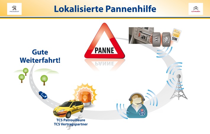 werden -Ab März 2010 wird der lokalisierte Notrufservice der Marken Peugeot und Citroën in der Schweiz dem Touring Club Schweiz anvertraut. Es besteht dadurch die Möglichkeit, manuell oder automatisch eine Sprach- und SMS-Verbindung zwischen dem Fahrzeug und der Anrufzentrale des TCS aufzubauen. Dieser kann dann anhand der erhaltenen Angaben im Pannenfall selbst helfen oder andernfalls die entsprechenden Rettungsdienste alarmieren. Die Vereinbarung ermöglicht es dem TCS, der führenden Pannenhilfe-Organisation in der Schweiz, erster Dienstleister zu sein, der einen solchen Service in der Schweiz anbietet. Er bestätigt so seine Führungsrolle im Bereich Pannenhilfe und positioniert sich als Vorreiter bei den Telematikdienstleistungen. Dank der On-Board-Telematiksysteme ist der Bereich Personen- und Fahrzeug-Assistance einem kompletten Wandel unterworfen. Von nun an ist es möglich, eine Sprachverbindung mit dem Fahrer und den anderen Fahrzeuginsassen aufzubauen, automatisch den genauen Standort des Fahrzeugs zu bestimmen und zu wissen, ob ein Aufprall vorliegt. Diese Technologie wird ab 2010 in den Fahrzeugreihen der Marken Peugeot und Citroën sehr häufig anzutreffen sein und ist dank der mit dem TCS geschlossenen Partnerschaft in der Schweiz ab März in Betrieb. Sämtliche Anrufe, die manuell oder automatisch von diesen Fahrzeugen ausgehen, werden dabei dank eines zusammen mit der alabus AG entwickelten Systems von der Anrufzentrale des TCS empfangen. Betrifft der Anruf die lokalisierte oder die herkömmliche Pannenhilfe (Peugeot Connect Assistance/Citroën Assistance), so helfen die etwa 225 Patrouilleure des TCS direkt, damit die Fahrt problemlos fortgesetzt werden kann. Im Falle eines Notrufs (Peugeot Connect SOS/Citroën Urgence) nimmt der TCS die vom Fahrzeug übermittelten Daten (SMS) entgegen, verarbeitet sie und alarmiert die zuständigen öffentlichen Rettungsdienste. Wichtig ist, dass die Sprachverbindung zur Bewertung der Situation stets in der Sprache des Kunden aufgebaut wird. Reagieren die Fahrzeuginsassen im Falle eines automatischen Anrufs nicht, so werden stets die Rettungskräfte alarmiert. Peugeot und Citroën, die auf diesem Gebiet besonders innovativ sind, haben bereits mehr als 750'000 mit einem solchen Telematiksystem ausgerüstete Fahrzeuge auf den Markt gebracht, und zwar in neun europäischen Ländern, wo ein Partner diesen sehr qualifizierten Service sicherstellt: Frankreich, Deutschland, Italien, Spanien, Belgien, Niederlande, Luxemburg, Portugal und Öster¬reich. Ab März 2010 kommen auch die Schweizer Kunden von Peugeot und Citroën in den Genuss dieses Service (wenn sie ein Fahrzeug besitzen, das mit einem der in den Fahrzeugreihen von Peugeot und Citroën verfügbaren Telematikgeräte ausgerüstet ist). Während der Pressetage des nächsten Genfer Automobilsalons werden an den Messeständen von Peugeot, von Citroën und des TCS mehrere Fahrzeuge zu sehen sein, mit denen demonstriert werden kann, wie leistungsfähig dieser Service ist und wie leicht er genutzt werden kann. Diese Vereinbarung bewirkt zweifellos eine Verbesserung der Sicherheit im Strassenverkehr, sind doch die ersten Minuten nach einem Unfall entscheidend. Eine exakte Lokalisierung, das sofortige Erfassen der für die Rettungskräfte wichtigen Angaben und die schnelle Übermittlung eines qualifizierten Notrufs sind die Garantie für einen optimalen Service, um die Folgen eines Unfalls auf ein Minimum zu beschränken. Diese neue Partnerschaft verstärkt die Zusammenarbeit zwischen dem TCS und PSA Peugeot Citroën. Bislang wurden vom TCS nur die herkömmliche Pannenhilfe und die Assistance für die Fahrzeuge der Marke Peugeot, die durch die Herstellergarantie abgedeckt waren, sichergestellt. Seit dem 1. Januar 2010 wurde auch für die Marke Citroën eine ähnliche Vereinbarung getroffen. Kontakt: Stephan Müller, Mediensprecher, Tel.: 031 380 11 44, Natel: 079 302 Permalink:
