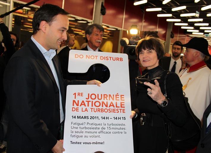 MedienmitteilungBundespräsidentin Micheline Calmy-Rey entdeckt den "Turboschlaf"2011-03-03T16:22:05Bern (ots) - Anlässlich der Eröffnung des 81. Auto-Salons in Genf hat die Bundespräsidentin Micheline Calmy-Rey die Präventionskampagne gegen die Müdigkeit am Steuer kennen gelernt. Mit Interesse hat die Bundespräsidentin, Frau Micheline Calmy-Rey am TCS-Stand die Präventionskampagne "Turboschlaf" entdeckt. Diese vom Fonds für Verkehrssicherheit finanzierte Kampagne wird von der Beratungsstelle für Unfallverhütung-bfu geleitet. Die Kampagne will die Automobilisten auf die Gefahren der Müdigkeit am Steuer aufmerksam machen. Der 14. März 2011 ist übrigens zum nationalen "Turboschlaf-Tag" bestimmt worden. Als Partner dieser nationalen Kampagne stellt der TCS auf seinem Stand zwei Sitze zur Verfügung und macht auf die Thematik Müdigkeit am Steuer aufmerksam. Die Turboschlaf-Kampagne wird über die sozialen Netzwerke und das Internet verbreitet. Mehr Informationen unter: www.turboschlaf.ch www.facebook.com/turbosieste www.youtube.com/tcs Kontakt: Stephan Müller, Mediensprecher TCS, 031 380 11 44, 079 302 16 36, Permalink: