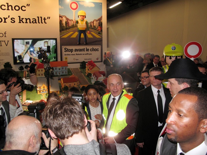 MedienmitteilungSicherer Schulanfang mit Ueli Maurer!2013-03-07T14:37:44Bern (ots) - Anlässlich der Eröffnung des 83. Internationalen Genfer Auto-Salons traf der Bundespräsident am TCS-Stand mit einer Primarschulklasse zusammen. Er streifte sich eine der Sicherheitswesten über, wie sie an sämtliche Kinder abgegeben werden, die zu Anfang des Schuljahres 2013 in die Primarschule eintreten. Bundespräsident Ueli Maurer traf am Stand des TCS die Schülerinnen und Schüler einer ersten Primarschulklasse aus Grand-Saconnex, die allesamt Sicherheitswesten trugen. Er verstand sich auf Anhieb gut mit den Kindern und streifte sich zum Zeichen seines Engagements für die Sicherheit im Strassenverkehr ebenfalls eine Sicherheitsweste über. Dank dieser vom TCS finanzierten Verkehrssicherheits-Aktion werden alle Erstklässler, die sich 2013 um ersten Mal auf den Weg in die Primarschule machen, mit Sicherheitswesten ausgestattet sein. Die zweifarbigen, mit einem TCS-Playmobil-Schülerlotsen geschmückten Westen sind mit reflektierenden Elementen und einer Kapuze versehen. Sie entsprechen den internationa¬len Qualitäts- und Sicherheitsnormen. Insgesamt werden 80'000 Sicherheitswesten an Kinder verteilt, die dieses Jahr in die erste Klasse eintreten. Sie ergänzen die für Kindergärtner bestimmten Triki-Leuchtgürtel des TCS. Kontakt: Stephan Müller, Mediensprecher TCS, 058 827 34 41, 079 302 16 36, Permalink: