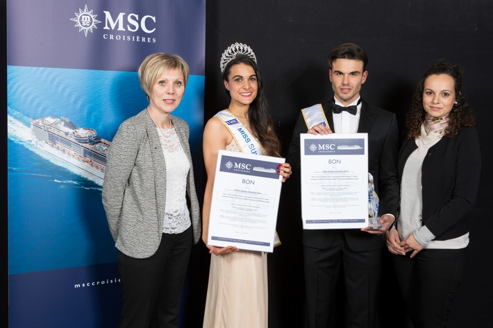 Der Hauptsponsor MSC Kreuzfahrten gratuliert Julie Aubry und Mattia Tondo zur Wahl zu Miss und Mister Suisse romande 2015. Das Unternehmen freut sich, die beiden frisch gekürten auf einem seiner Kreuzfahrtschiffe begrüssen zu dürfen.