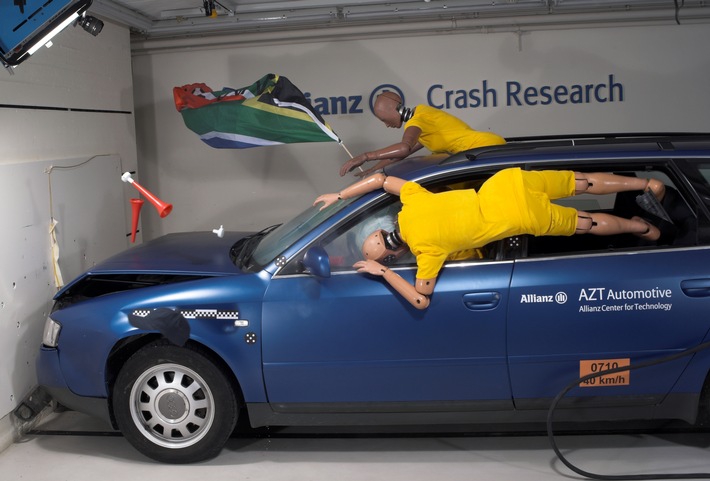Allianz Crashtest zur WM: Bei Fanjubel im Autokorso drohen tödliche Gefahren